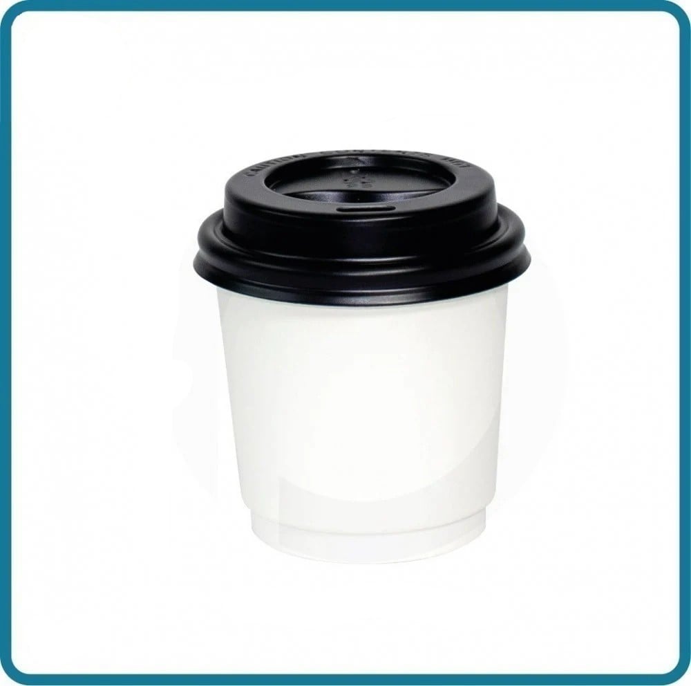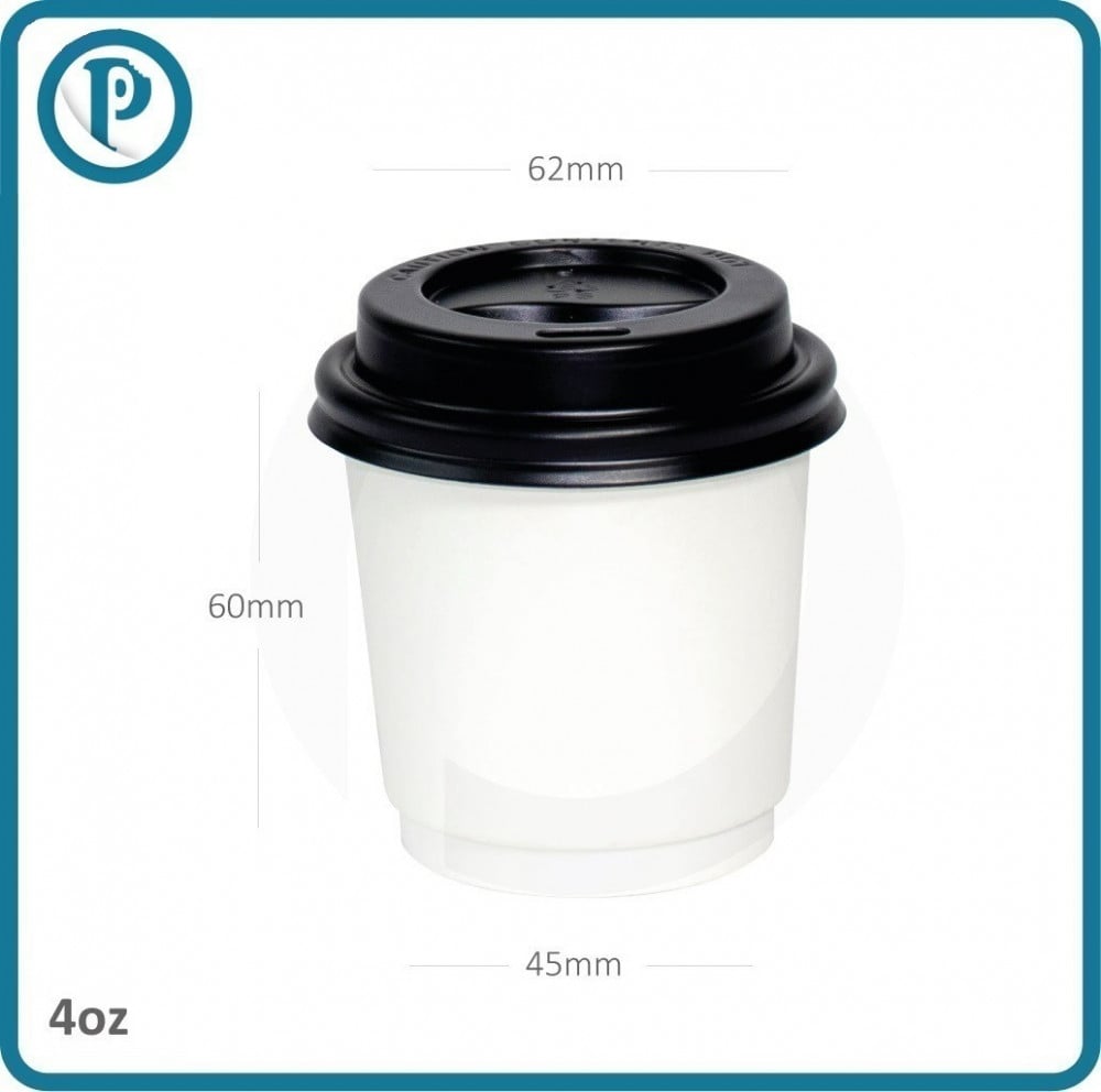 4oz Double Wall White Paper Cup 500/ctn with Black Lid